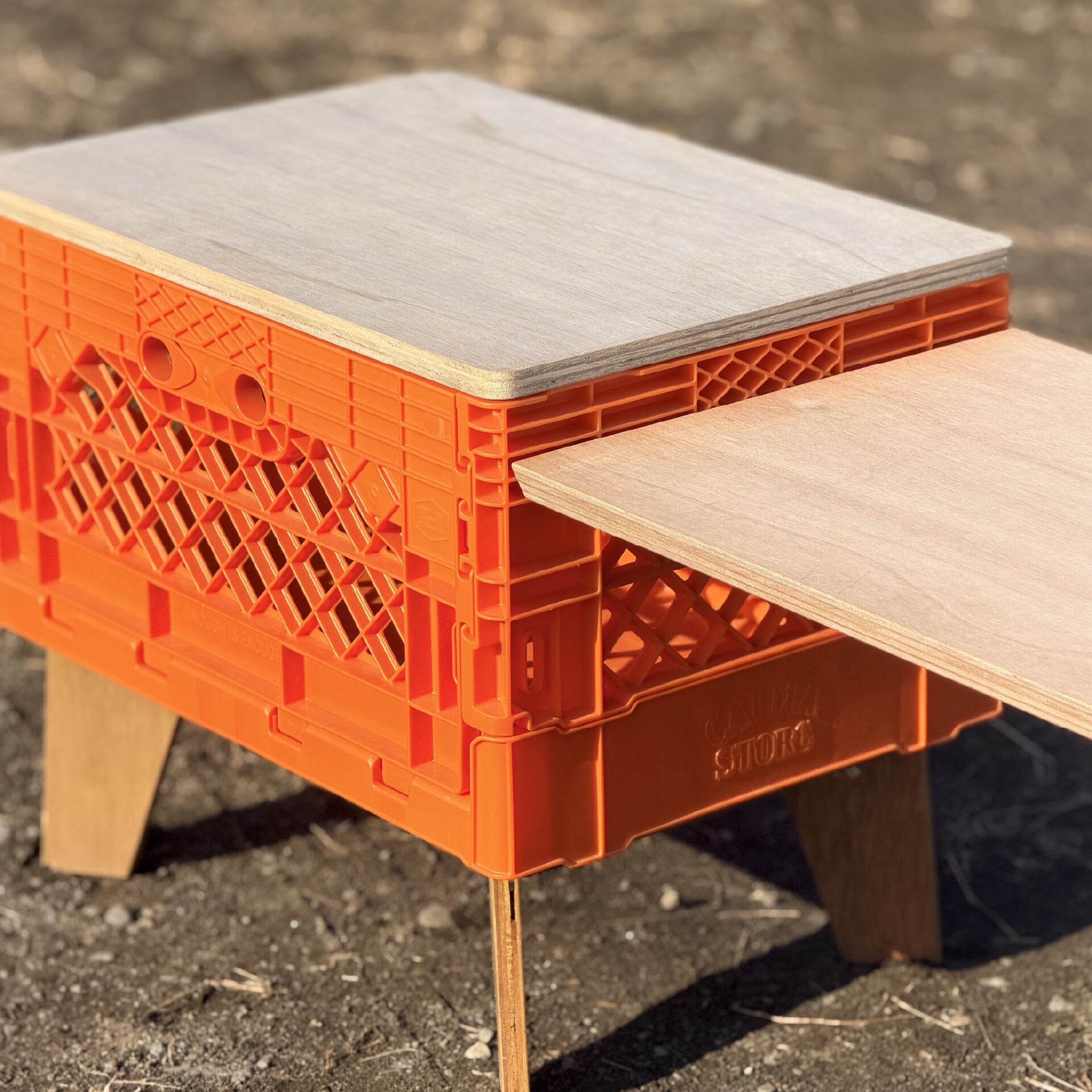 使用することで2つのボックスの間の棚板となり上に物おいたり、作業をしたりできるようになります。