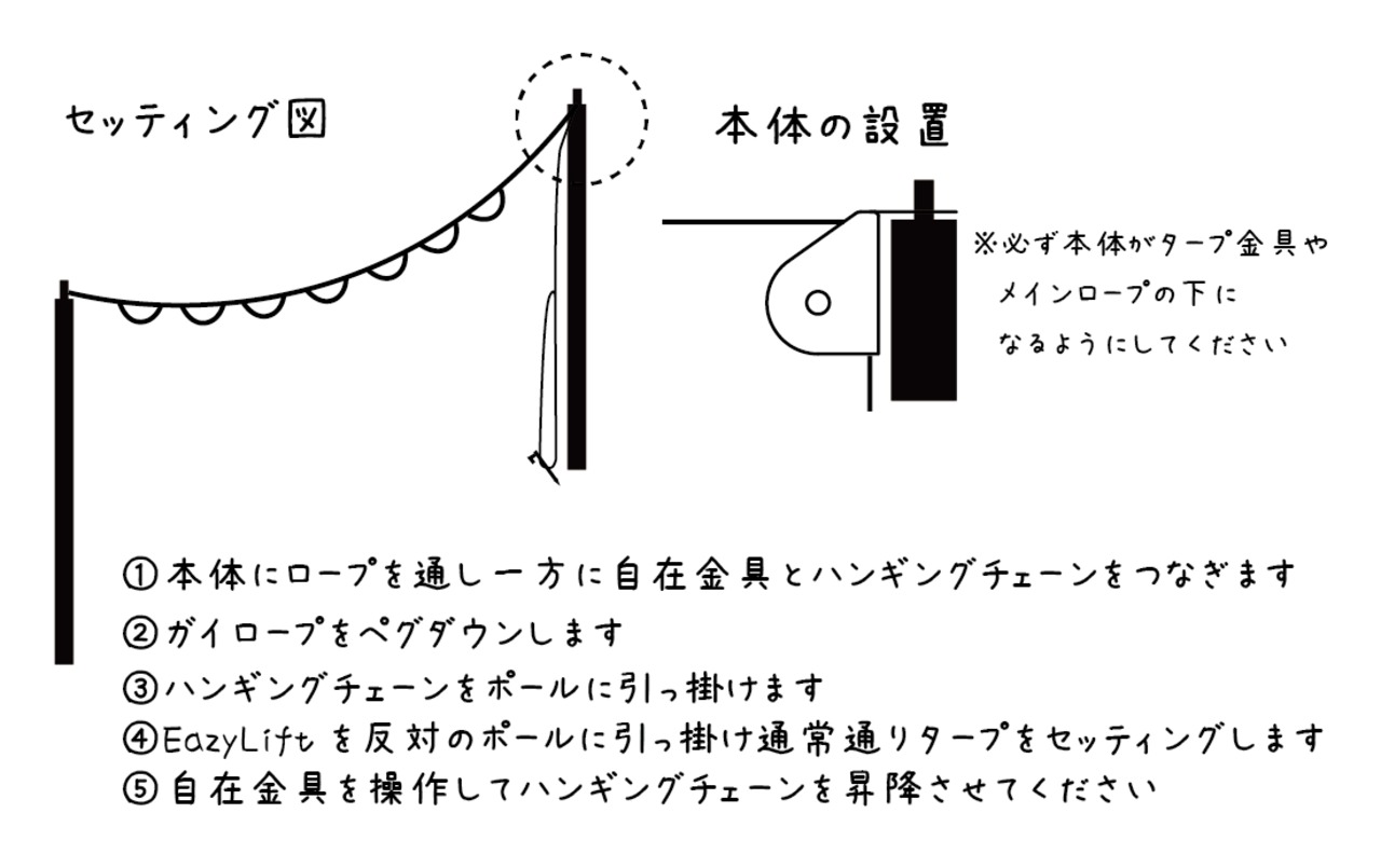 EazyLift用のガイロープとギアバカ刻印の自在金具のセットです。